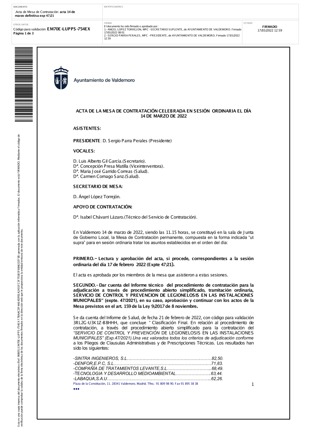 En esta sección puede acceder a los ficheros correspondientes a las actas firmadas de de mesas de contratación del Ayuntamiento de Valdemoro.
