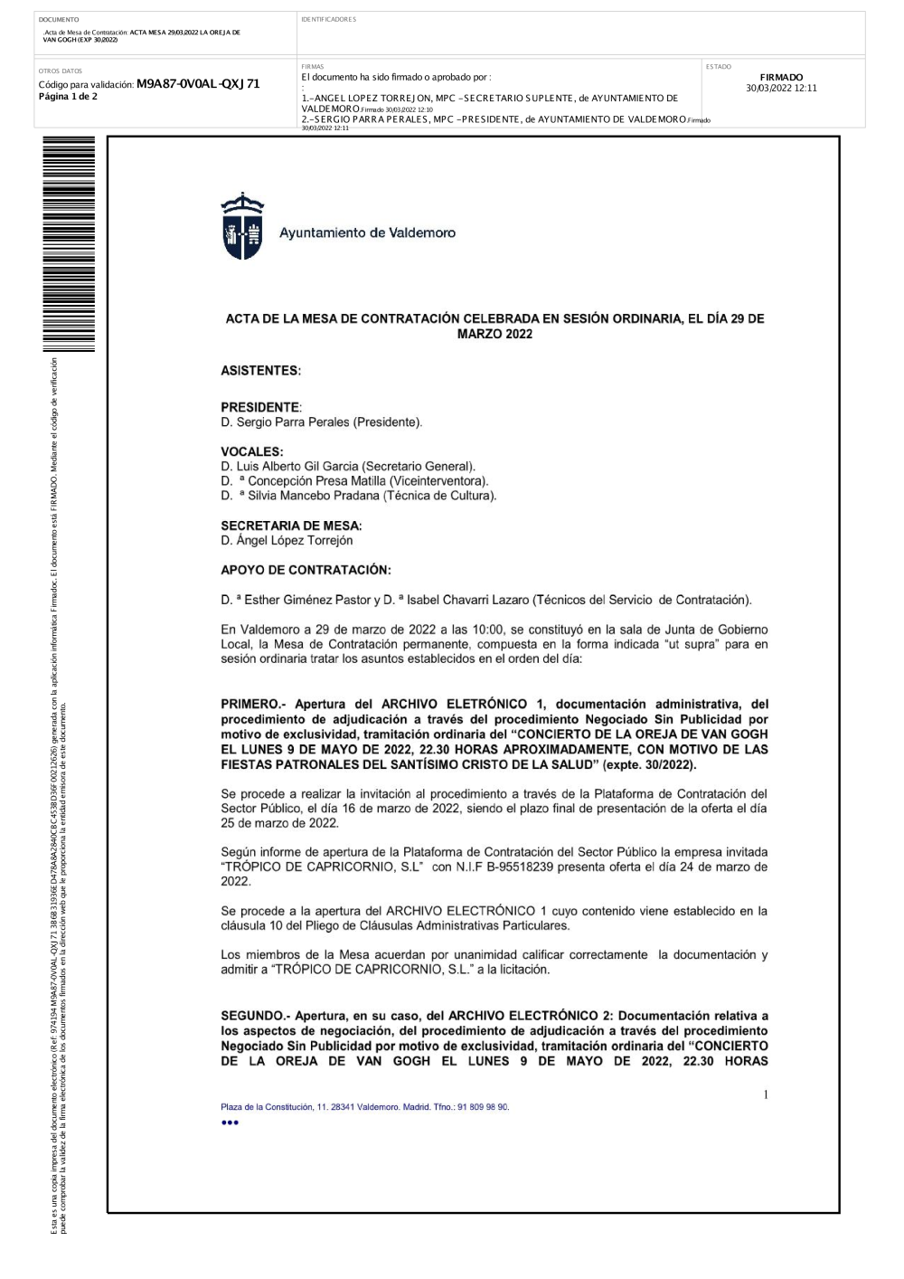 En esta sección puede acceder a los ficheros correspondientes a las actas firmadas de de mesas de contratación del Ayuntamiento de Valdemoro.