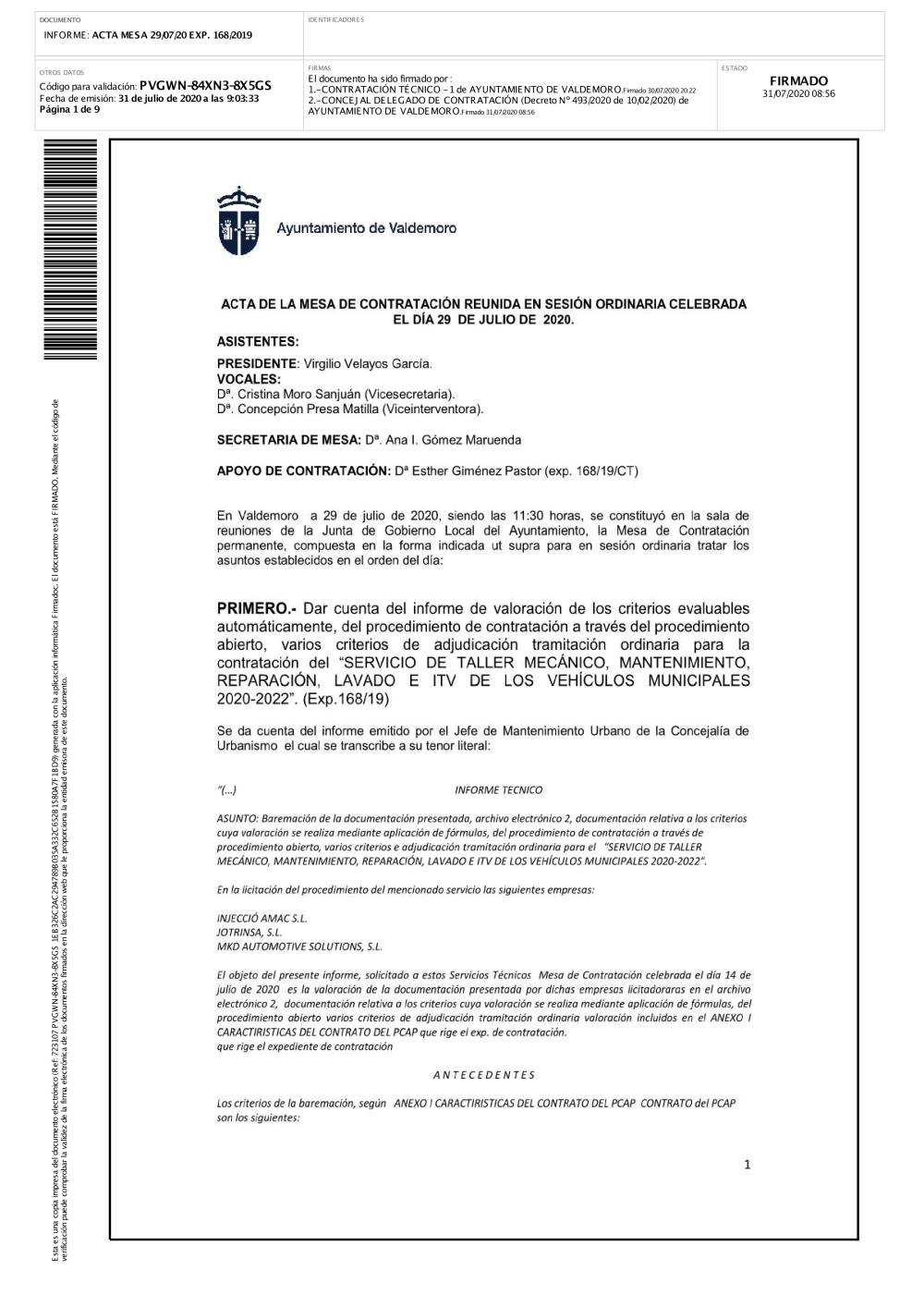 Acta Mesa de Contratación 29 de Julio. Exp.168_2019