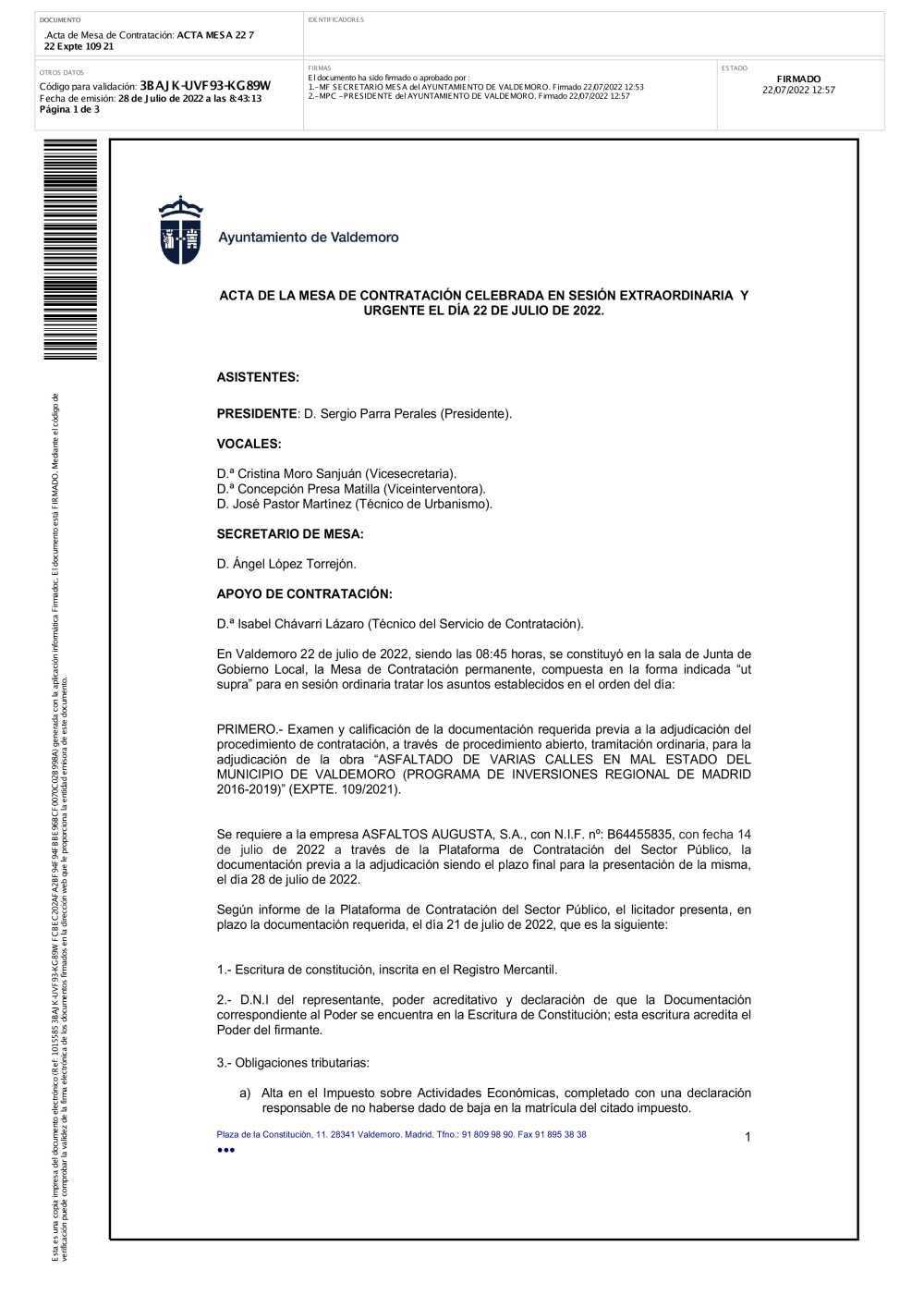 En esta sección puede acceder a los ficheros correspondientes a las actas firmadas de de mesas de contratación del Ayuntamiento de Valdemoro.