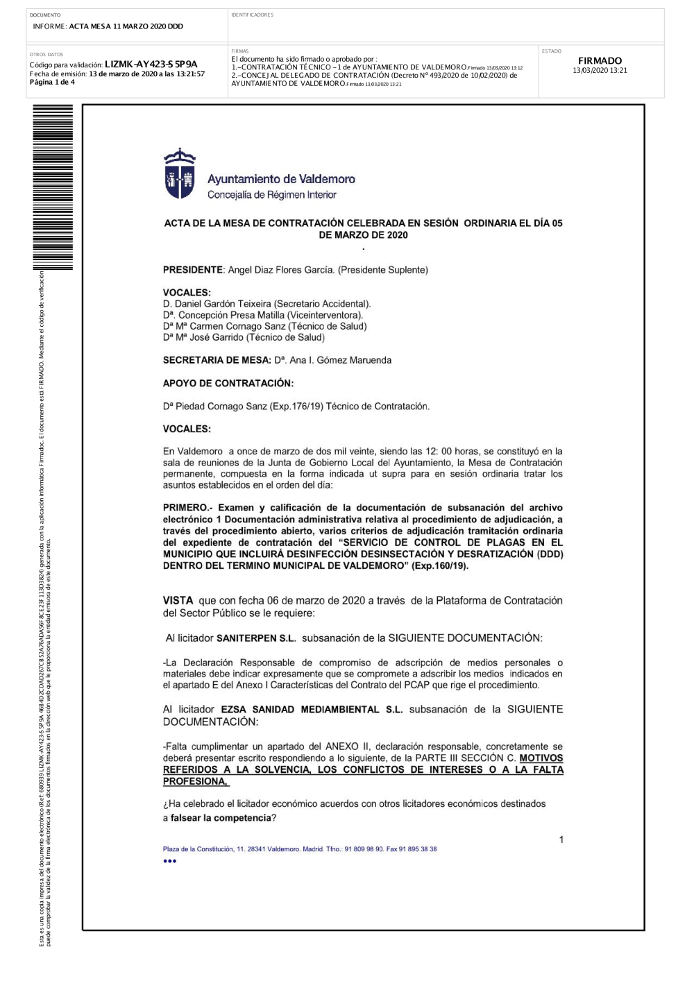 Acta Mesa de Contratación 11 de Marzo 2020. Exp 160_2019