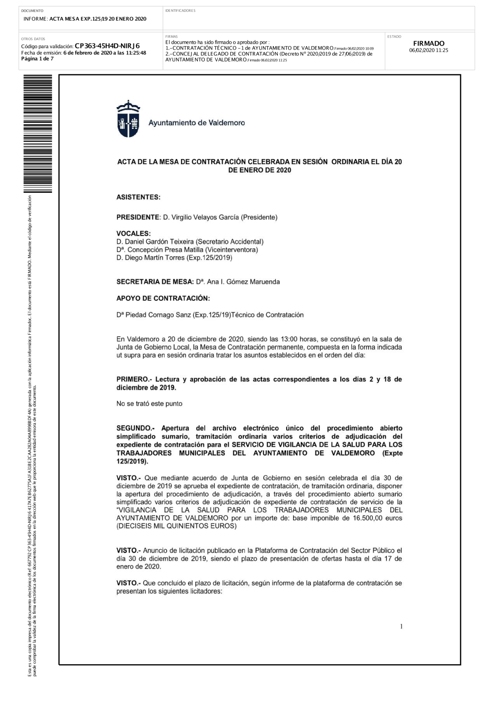 Acta Mesa de Contratación 20 de Enero. Exp 125_2019