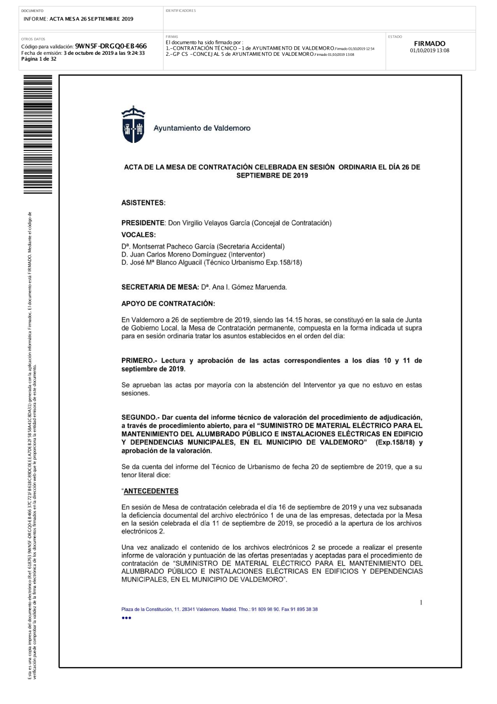 Acta Mesa de Contratación 26 de Septiembre