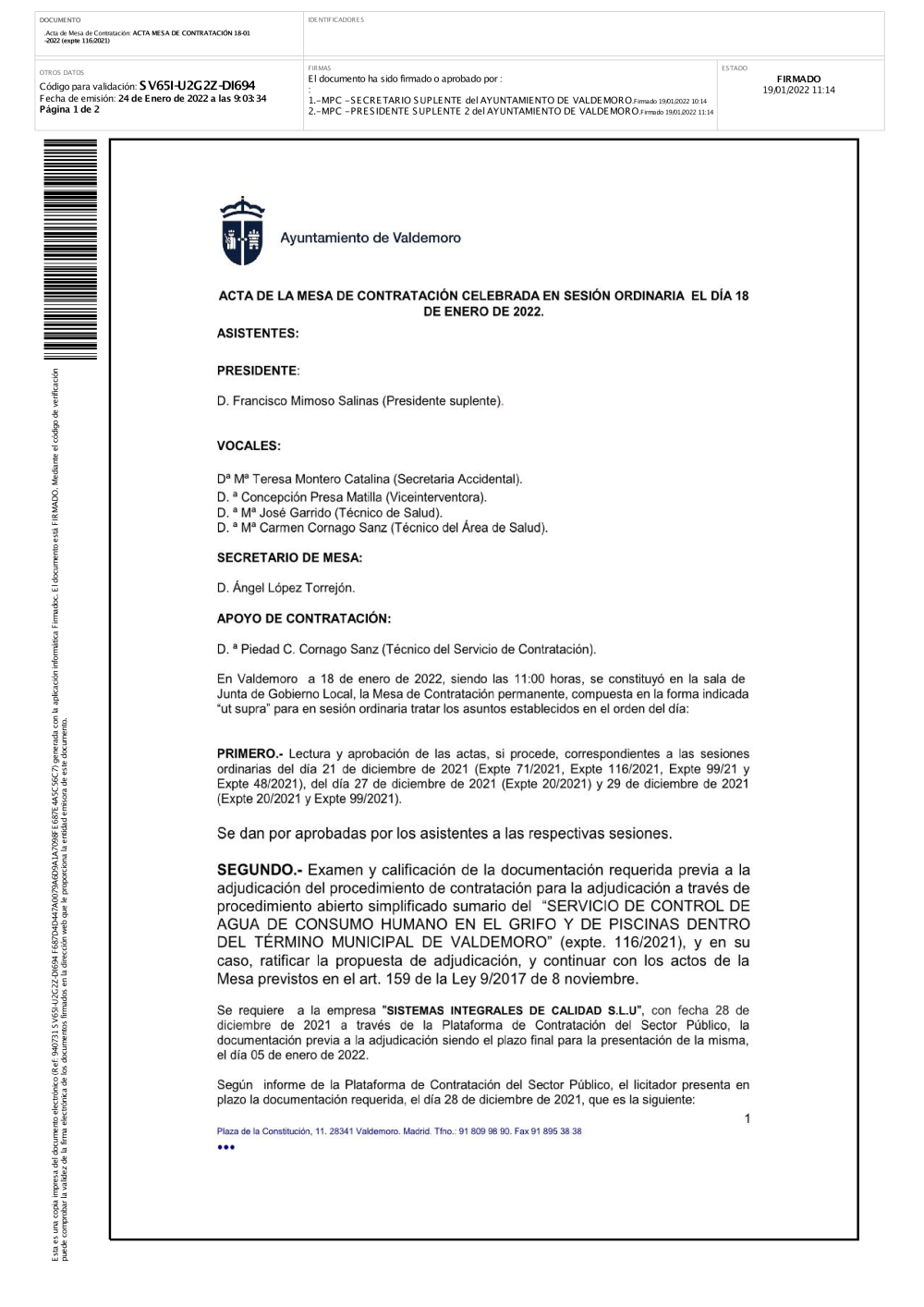 En esta sección puede acceder a los ficheros correspondientes a las actas firmadas de de mesas de contratación del Ayuntamiento de Valdemoro.