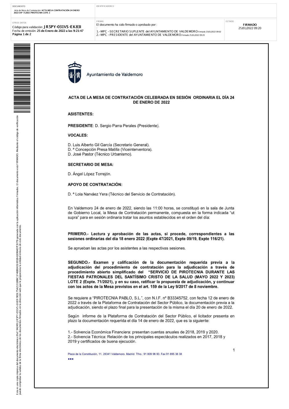 En esta sección puede acceder a los ficheros correspondientes a las actas firmadas de de mesas de contratación del Ayuntamiento de Valdemoro.