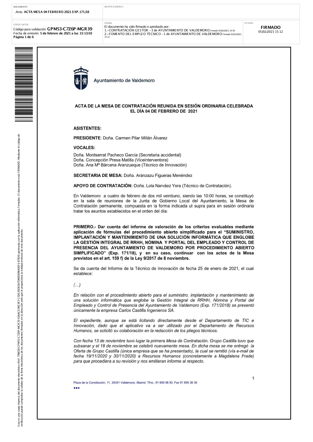 En esta sección puede acceder a los ficheros correspondientes a las actas firmadas de de mesas de contratación del Ayuntamiento de Valdemoro.